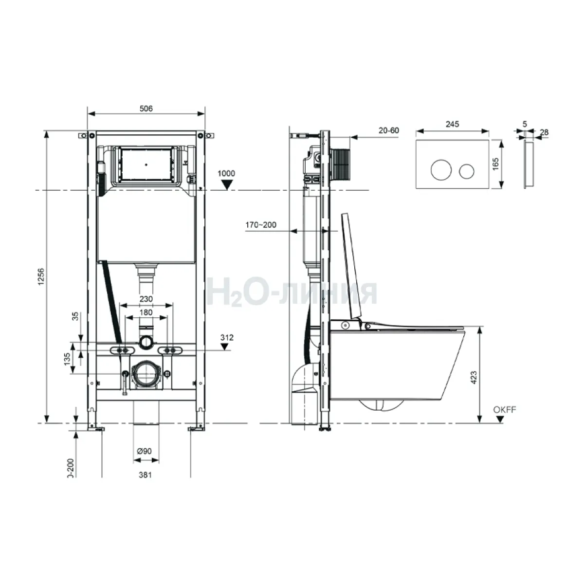 Глубина унитаза, мм: